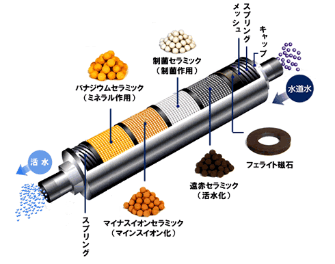 磁石と高性能特殊セラッミクボールの力で家全体の活水器でお水を変化させます。話題のバナジウムセラミックを搭載し水質改善がレベルアップ!
